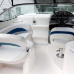 This is a one owner vessel with great performance and weekending ability. The Mercruiser 5.0L MPI 300 HP combined with the Bravo III Dual Prop outdrive will pick her up out of the hole quickly and also maintains efficiency.