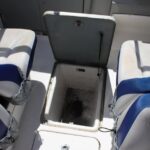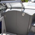 The optional Bimini top and camper canvas turns the boat into a seagoing RV capable of longer camp-cruises for folks who don’t mind roughing it a bit. A MerCruiser Alpha One stern drive provides the punch.