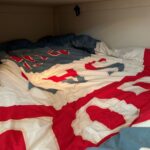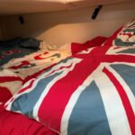 Large permanent double in aft cabin with overhead reading light and porthole.