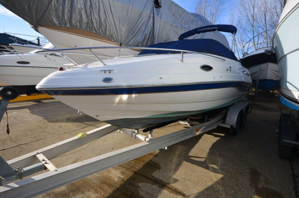 2005 Chaparral 215SSi. Fitted with a 1.7L Mercruiser DTI Diesel engine with approximately 200 hours running time. Specification that includes; Raymarine RC400 plotter, Simrad VHF, Sunpad, cuddy cabin, 2 berth, bilge pump, Economical sports boat with berths if required. A very nice example. Thi si a very tidy and well kept Chaparral 215SS1, Upholstery is in great condition.