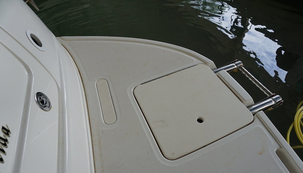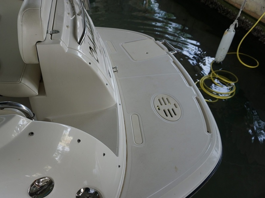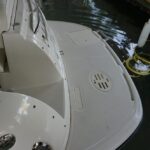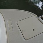 Spacious bow accessed through cockpit windscreen walkthrough. Large sun pad forward of the windscreen with anchor locker up.